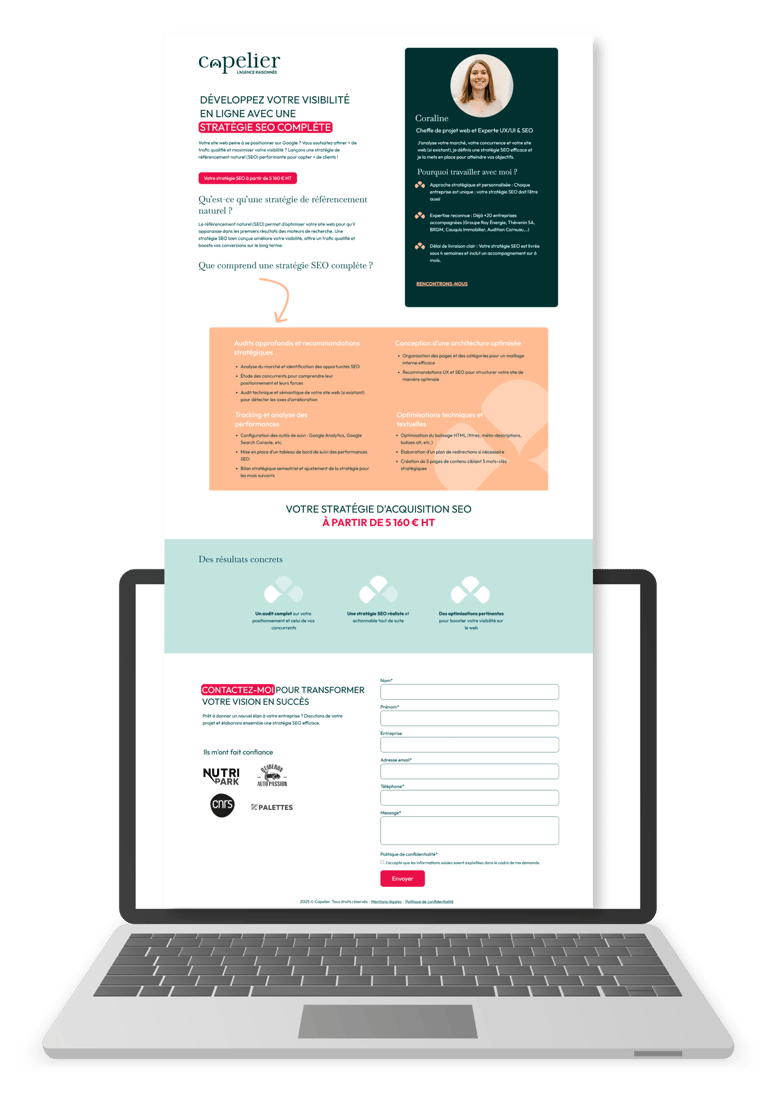 Copelier vous accompagne dans la création d’une landing page sur mesure, pensée pour capter l’attention et transformer vos visiteurs en clients.
